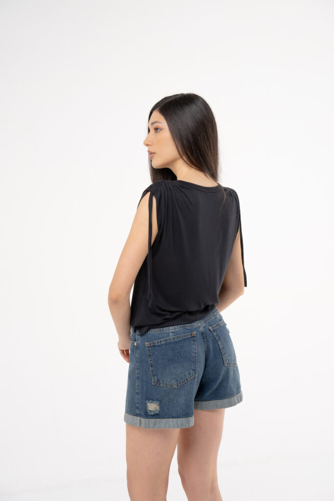 El Short Cabaña es una prenda versátil confeccionada en textil rígido, que aporta estructura y durabilidad.